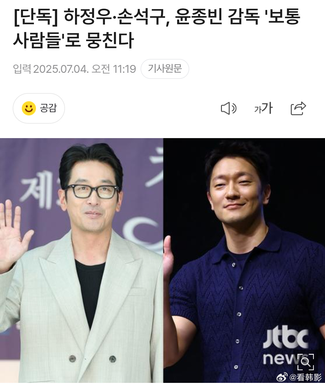 超強陣容!河正宇-孫錫久確定出演全新韓劇《普通人們》主人公